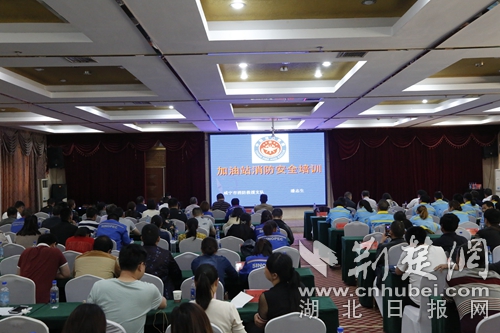 圖為全市加油站站長學習消防知識現(xiàn)場?!Ⅺ惸葦z