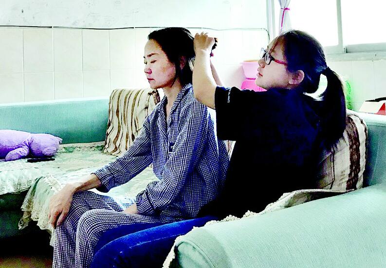 王渝玥原計(jì)劃跟同學(xué)開暑期培訓(xùn)班,這樣可給媽媽掙點(diǎn)藥費(fèi),但沒想到媽媽病情惡化,她只好放棄開班的想法全身心陪護(hù)母親。從沒干過家務(wù)的她,拿起了拖把拖地,學(xué)會(huì)了簡單做飯,每天幫母親洗澡,扶著母親上下床、上衛(wèi)生間?!吧洗髮W(xué)的日子越來越近,我要好好陪媽媽,她已沒法陪我一起去北京了……”王渝玥說到這里淚如雨下。