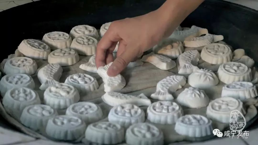 印子粑是咸寧鄉(xiāng)村廣為流傳的民俗食品,一般在春節(jié)和孩子一歲生日時制作。粑印用木制,每個粑印有1-3個空模,形狀一般只有小茶杯口大。粑印里刻有反向的如魚以及花、草等各種動植物圖案,制作出來的粑邊緣有一圈花紋,形象生動,栩栩如生。堆成的粑山,晶瑩透亮,造型美觀,堪稱優(yōu)秀的民間藝術(shù)品。