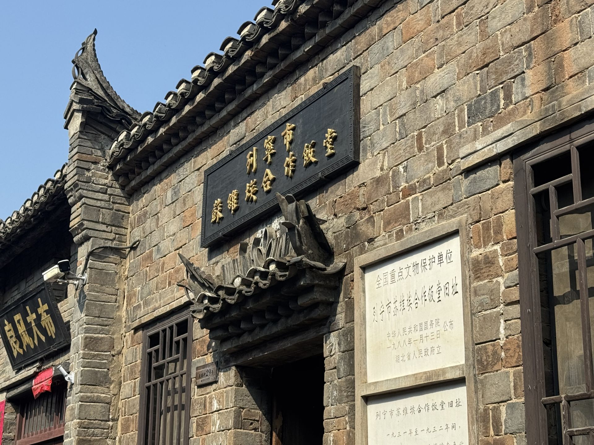 “小小黃安,人人好漢。銅鑼一響,四十八萬(wàn)。男將打仗,女將送飯……”沿著紅安縣七里坪鎮(zhèn)長(zhǎng)勝街老街的青石板路一路探訪,從街口到街尾只有400米長(zhǎng),卻有多個(gè)“國(guó)寶”單位:紅四方面軍指揮部舊址、七里坪工會(huì)舊址、鄂豫皖蘇維埃銀行、蘇維埃合作飯?zhí)?、鄂豫皖中西藥局等重要革命遺址……