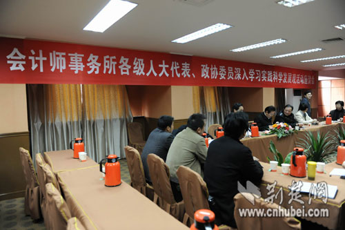 11月14日下午,省注冊(cè)會(huì)計(jì)師行業(yè)黨委在武昌財(cái)苑大廈召開了全省注冊(cè)會(huì)計(jì)師行業(yè)各級(jí)人大代表、政協(xié)委員深入學(xué)習(xí)實(shí)踐科學(xué)發(fā)展觀活動(dòng)座談會(huì)。來自全省各地的16位各級(jí)人大代表、政協(xié)委員齊聚一堂,為深入學(xué)習(xí)實(shí)踐科學(xué)發(fā)展觀活動(dòng)建言獻(xiàn)策,回顧二十年來注冊(cè)會(huì)計(jì)師行業(yè)黨建工作的發(fā)展歷程,展望會(huì)計(jì)師事務(wù)所行業(yè)的美好未來。