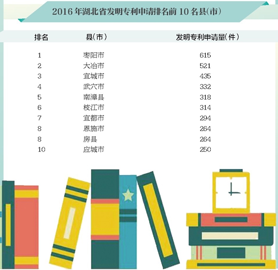 2016年湖北發(fā)明專利申請(qǐng)排名前10名縣(市)